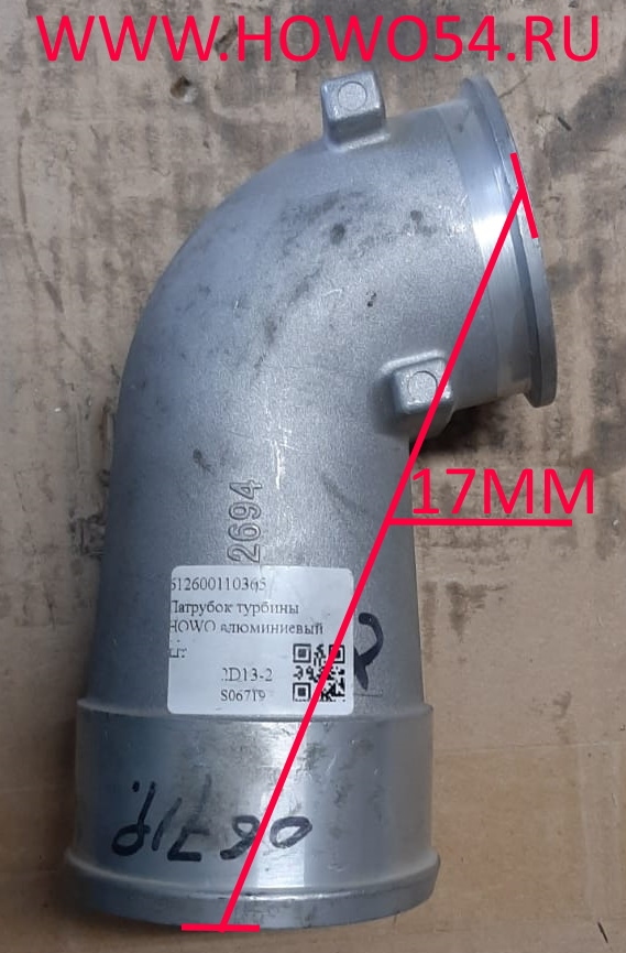 —Патрубок турбокомпрессора HOWO (алюминий) (06719) 612600110365